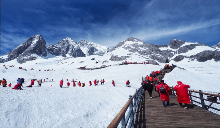 - Băng Xuyên – Được mệnh danh là dòng sông băng nằm ở độ cao cao nhất mà hệ thống cáp treo có thể đưa quý khách tham quan 4.506m so với mặt nước biển. Tại đây, quý khách chiêm ngưỡng hùng cảnh hùng vĩ của thiên nhiên, ngắm nhìn đỉnh núi quanh năm tuyết phủ, là biểu tượng uy nghi và linh thiêng của Lệ Giang. Quý khách có thể từng bước chinh phục từ độ cao 4.506m rồi tới 4.576m và cuối cùng là 4.680m theo con đường với những bậc gỗ lên cao, như những bậc thang dẫn quý khách đi về thế giới của các vị thần.