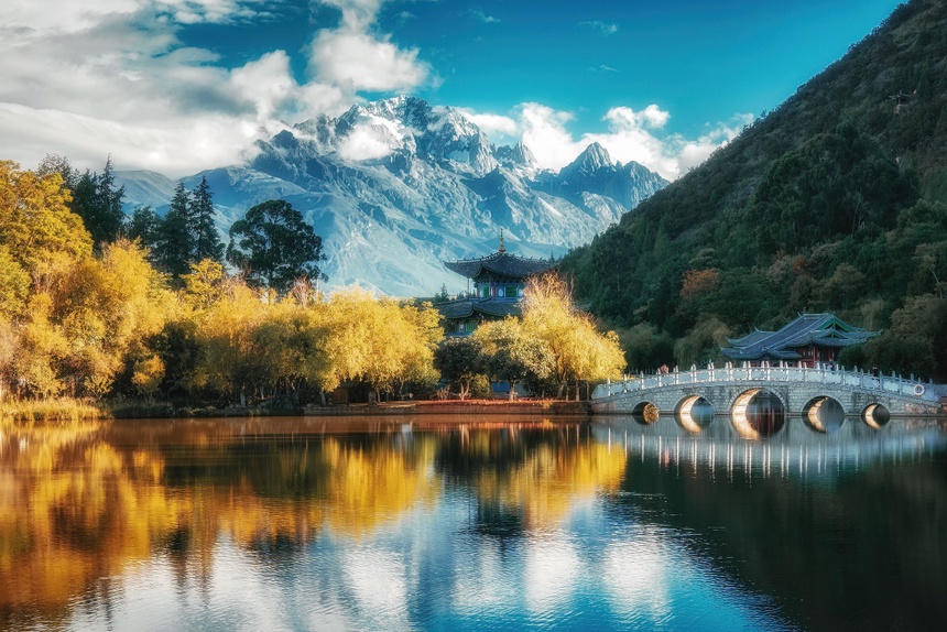 - Công viên Hắc Long Đàm – Nằm toạ lạc trên chân núi Voi, phía Bắc thành cổ Lệ Giang. Hắc Long Đàm được đón nhận dòng nước tinh khiết từ núi Tuyết Ngọc Long đổ về, nuôi dưỡng vùng đất Lệ Giang. Hắc Long Đàm được ví như “bức bích hoạ Lệ Giang”, vẻ đẹp tự tranh, sơn thuỷ hữu tình và thơ mộng. Từ Hắc Long Đàm, quý khách có thể ngắm nhìn sự hùng vĩ và uy nghi của núi tuyết ngàn năm, trong khung cảnh thanh bình và trong lành của mặt hồ phẳng lặng với những rặng cây đổi màu theo mùa. Bước vào đây, quý khách sẽ như lạc vào khuôn viên hoa mộng tươi đẹp của những bộ phim cổ trang Trung Quốc, mọi cảnh vật đều mang dáng dấp của thi ca và hội hoạ, vẻ đẹp vô thực và tuyệt mỹ.