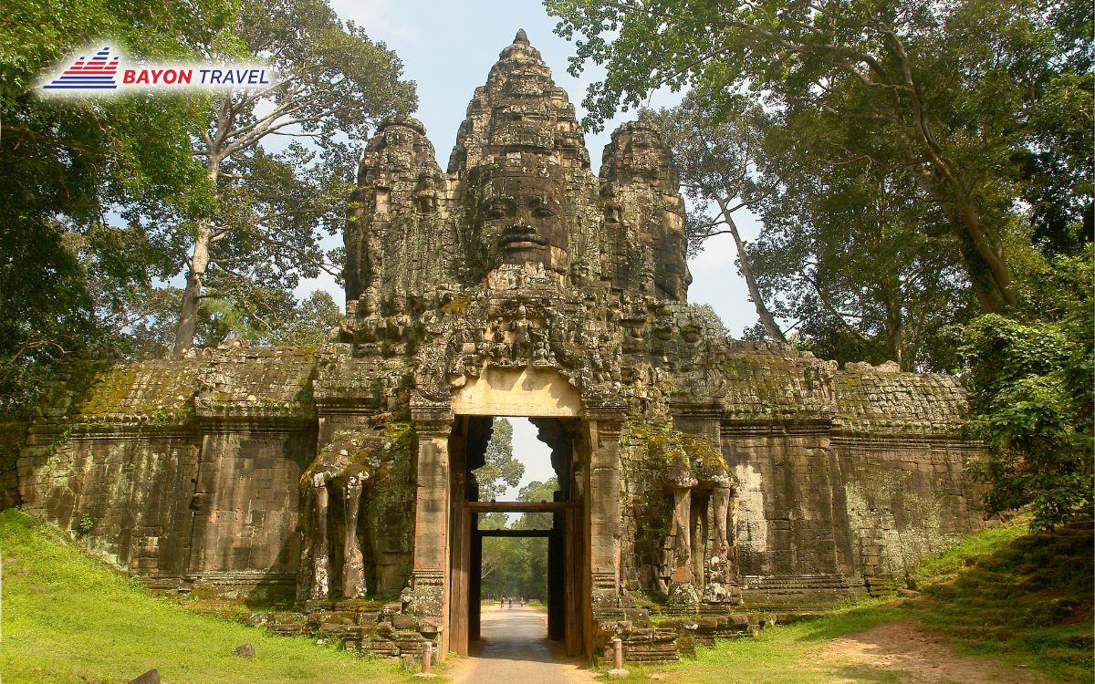 - Cổng nam Angkor Thom, một ngôi đền cổ rộng lớn với những điêu khắc và hoa văn độc đáo trên từng centimet gắn liền với sự tích văn hoá và phát triển của dân tộc Khmer. Đền Bayon 4 mặt với nụ cười bí ẩn, Quảng Trường Đấu Voi, cung điện của Đức Vua từ thế kỉ thứ 12….