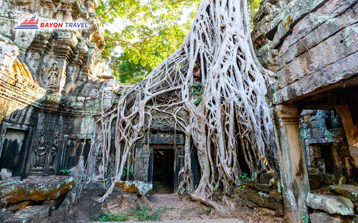 - Ta Prohm - một phế tích kinh thành Khmer cổ với những cây đại thụ hình thù kì quái là nơi được Hollywood chọn làm phim trường khởi quay bộ phim Bí Mật Ngôi Mộ Cổ, và một số đền đài khác…Mua quà lưu niệm mang dấu ấn đặc trưng Angkor.