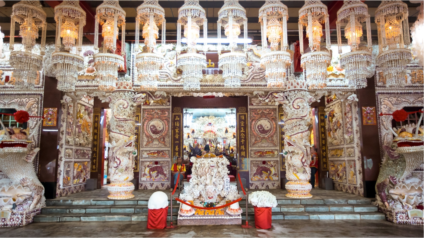 - Đền Vỏ Sò San Zhi (SanZhi Shell temple), tọa lạc tại quận Sanzhi, thành phố Tân Bắc, trước đây gọi là đền Fufu Dingshan. Đây là một ngôi đền rất đặc biệt, nó hoàn toàn được làm bằng vỏ sò và san hô, nên nó còn được gọi là đền San Zhi Shell, chính nhờ vào kiến trúc đặc biệt như trạm trỗ cắt ghép các chi tiết đều được làm bằng vỏ sò hoặc san hô tạo nên một tổng thể hòa hợp và cực bắt mắt nên nó luôn thu hút nhiều khách du lịch đến hành hương và trở thành một điểm tham quan nổi tiếng ở quận San Zhi, Tân Bắc, Đài Loan.