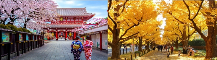 - Tour Mùa Thu đoàn sẽ đi tham quan: Meiji Jingu Gaien – con đường cây ngân hạnh nằm giữa trung tâm Nhật Bản thể hiện vẻ đẹp rực rỡ nhất vào mùa thu khi rừng lá đồng loạt chuyển sang sắc vàng rực óng.