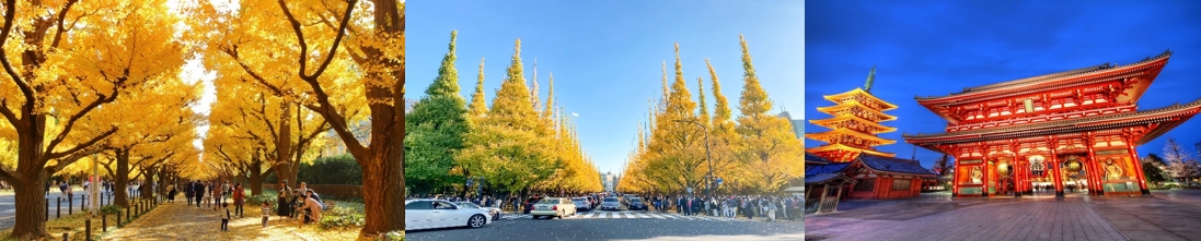 - Tour Mùa Thu đoàn sẽ đi tham quan: Meiji Jingu Gaien – con đường cây ngân hạnh nằm giữa trung tâm Nhật Bản thể hiện vẻ đẹp rực rỡ nhất vào mùa thu khi rừng lá đồng loạt chuyển sang sắc vàng rực óng.