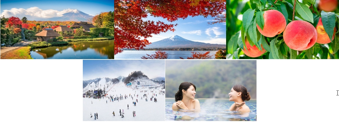 - Tour Mùa Hè: Công ty giành tặng chương trình hái trái cây theo mùa (chương trình có thể kết thúc trước hạn tùy theo mùa). Tỉnh Yamanashi được xem là “Vương Quốc Trái Cây” của Nhật Bản. Đến đây, du khách có thể thưởng thức nhiều loại trái cây thơm ngon, được hái ngay từ vườn cây của bà con nông dân. Với đủ loại quả đa dạng như đào, nho, đào, dâu…