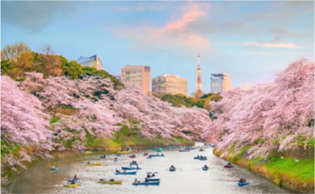 - Chidori Gafuchi – dòng sông thơ mộng với hai hàng cây anh đào bao phủ, xa xa là những con thuyền đầy màu sắc tạo nên một không gian vừa rực rỡ vừa thơ mộng. Đây là một trong những địa điểm ngắm hoa anh đào nổi tiếng nhất tại Tokyo.
